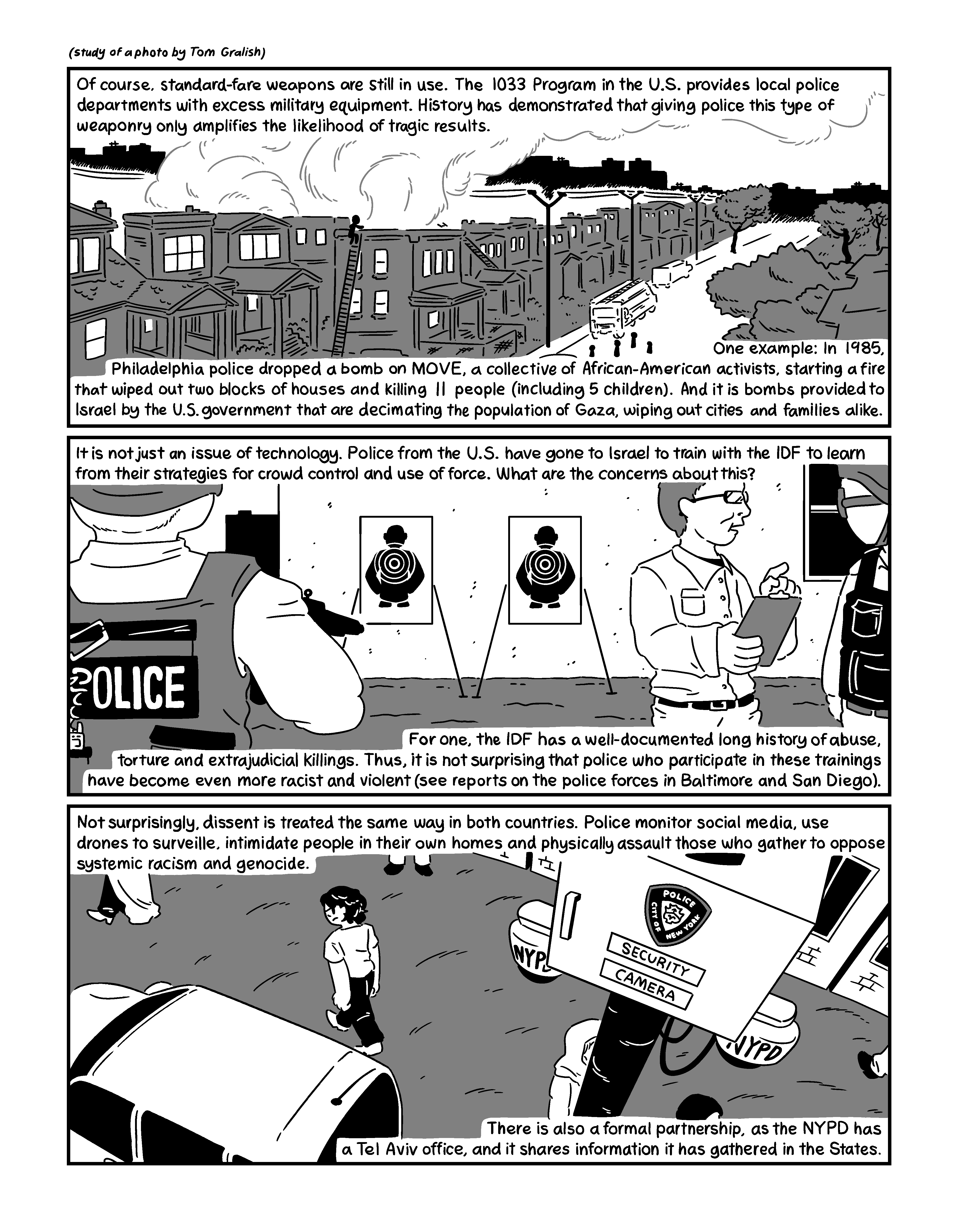 and the genocide occuring in Palestine. Created for a future issue of World War 3 Illustrated.